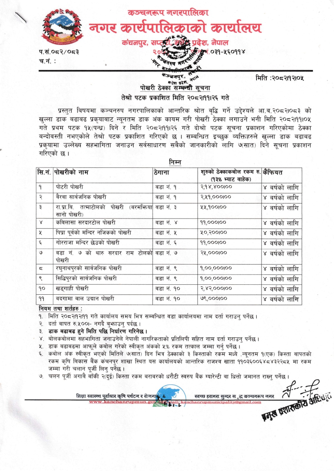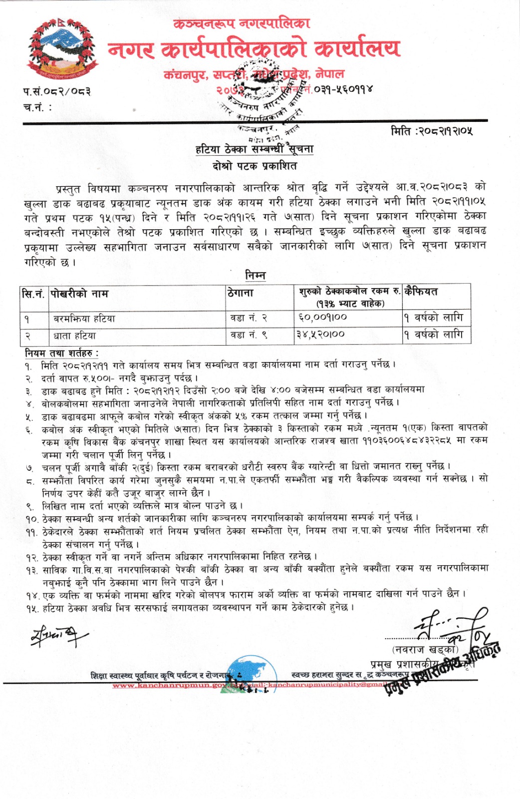 - सार्वजनिक खरिद/बोलपत्र सूचना