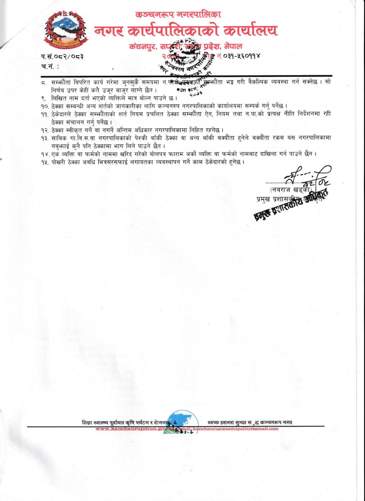 - कञ्चनरुप नगरपालिकाको कर्मचारी स्थायी पदपुर्ति सम्बन्धि नियमावली,२०७८