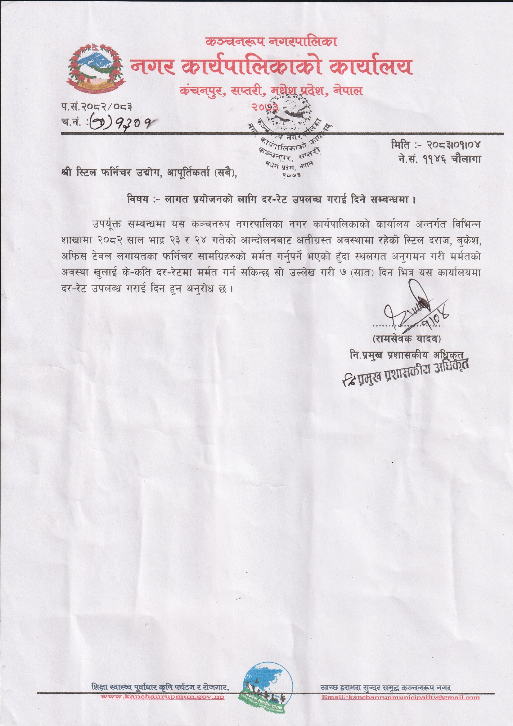 » दर-रेट उपलब्ध गराई दिने सम्बन्धमा ।