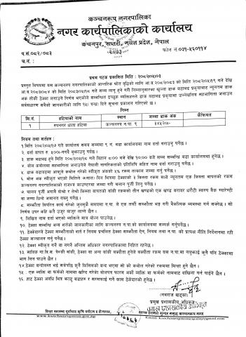 दरभाउपत्र स्वीकृत गर्ने आशयको सुचना ।