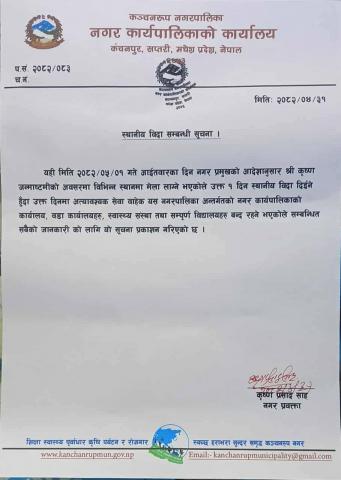 स्थानीय बिदा सम्बन्धि सूचना ।