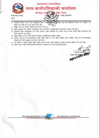 - कञ्चनरुप नगरपालिका कृषक समुह गठन, व्यवस्थापन तथा कार्यक्रम संचालन सम्बन्धी कार्यविधि,२०७७