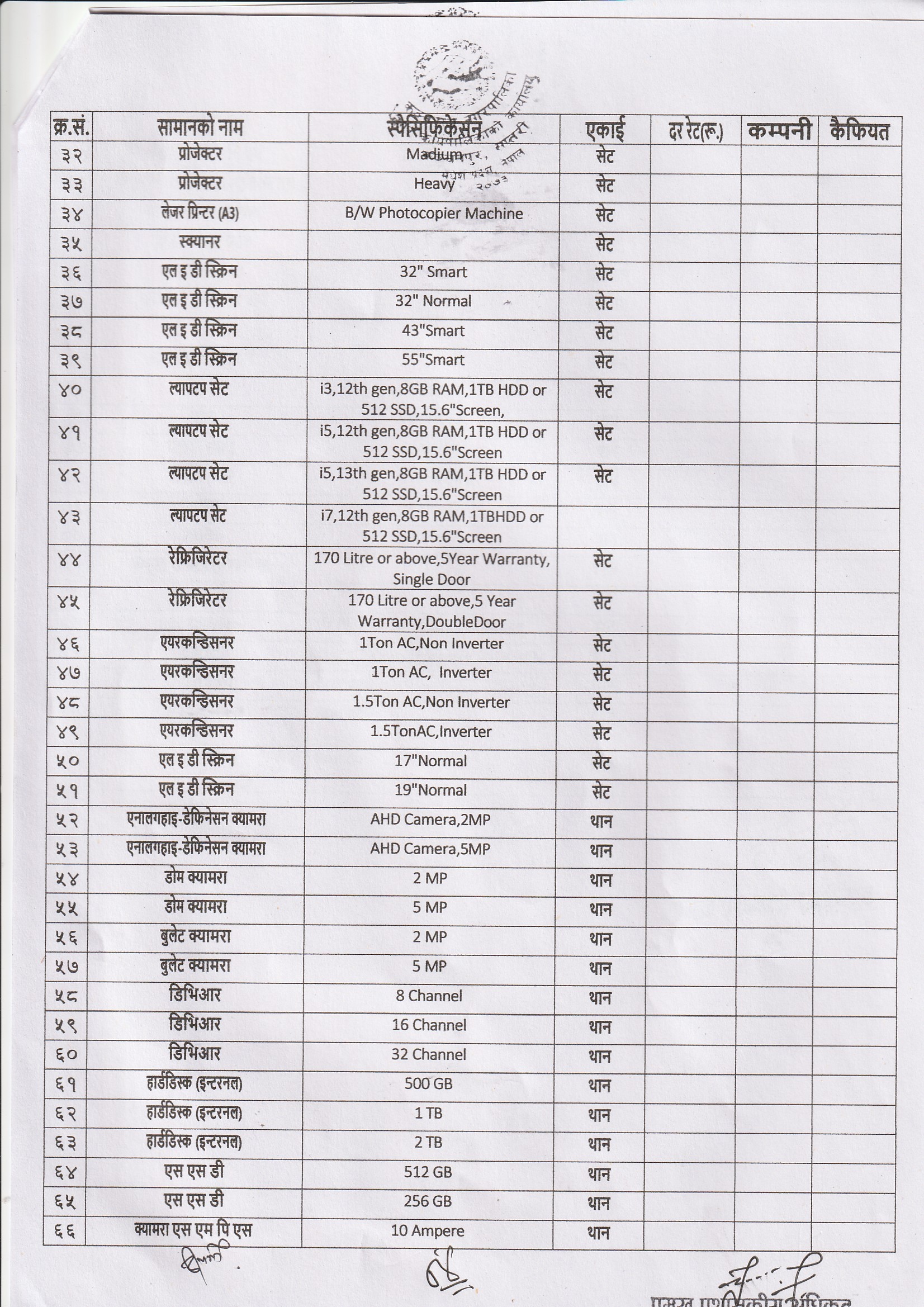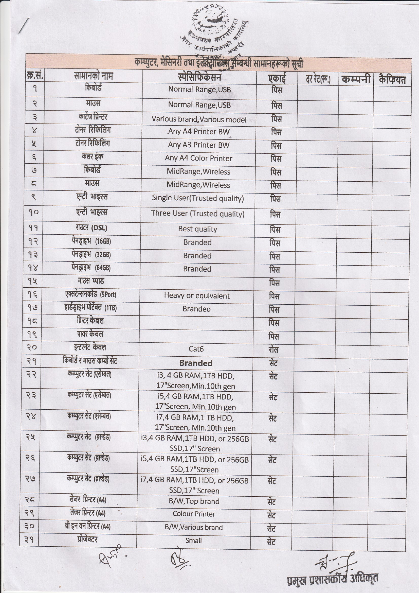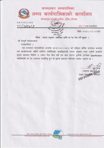 लागत अनुमान तयारीका लागि दररेट पेश गर्ने सम्बन्धमा ।