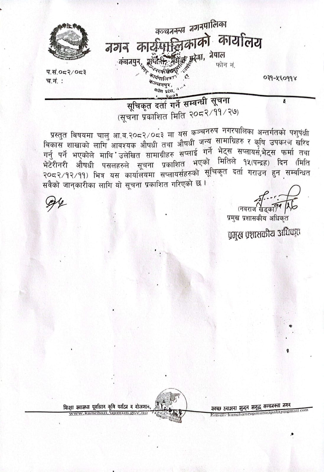 सूचीकृत दर्ता गर्ने सम्बन्धि सूचना ।